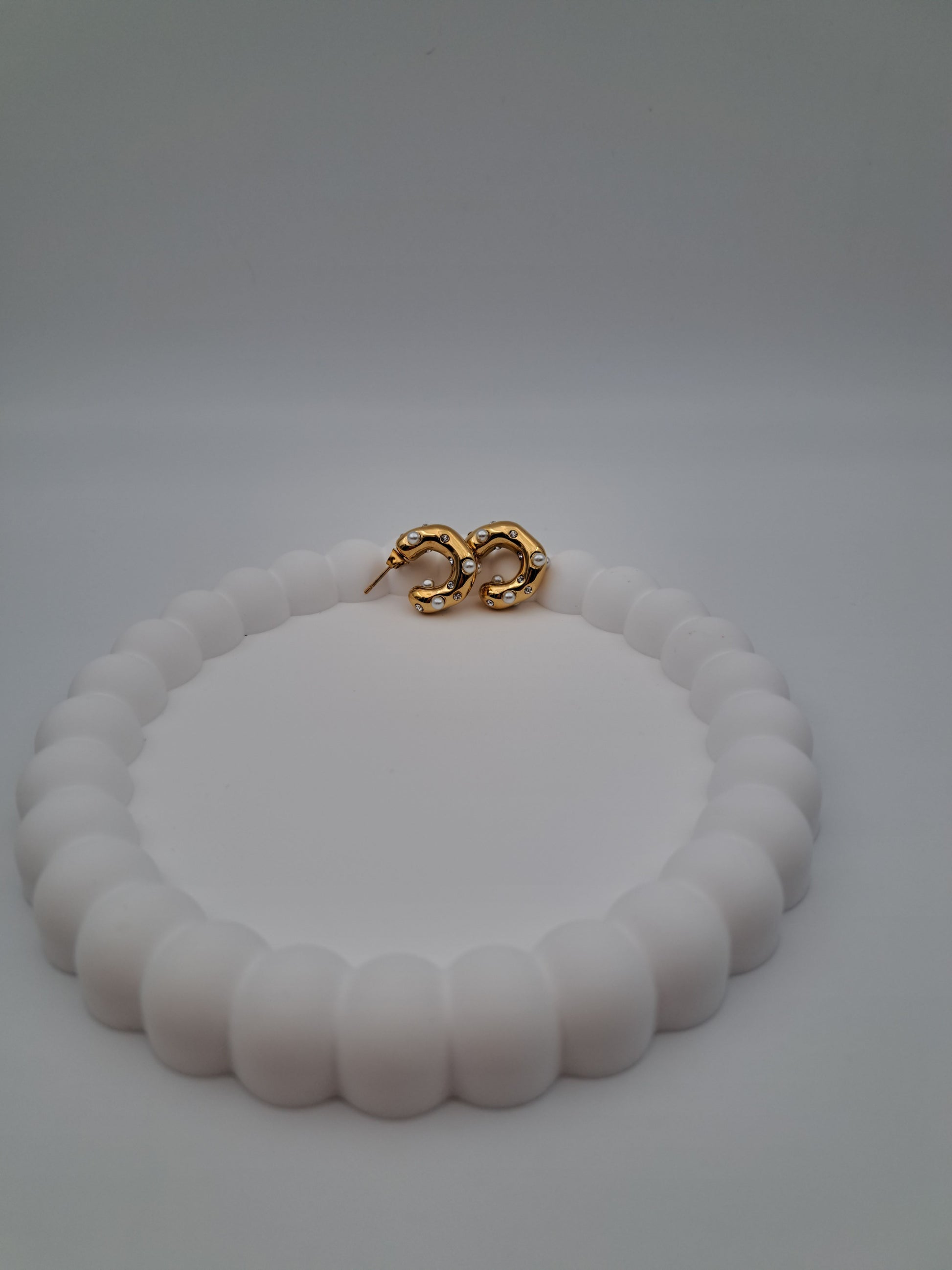 Wunderschöne Ohrringe, mit zarten Perlen und funkelnden Steinchen.
